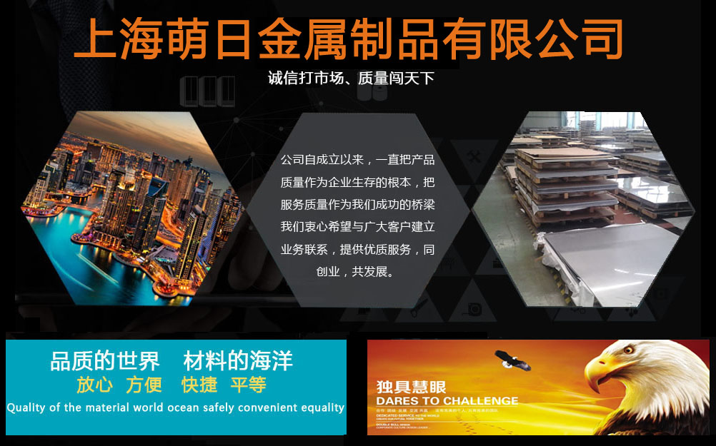 上海萌日金屬制品有限公司一直致力于為國內(nèi)各大中型國有企業(yè),外資企業(yè),民營獨(dú)資企業(yè),模具制造企業(yè),機(jī)械加工企業(yè),石油化工企業(yè)及器械企業(yè)等供應(yīng)各種特種鋼材,進(jìn)口/國產(chǎn)鋁合金,不銹鋼,合金結(jié)構(gòu)鋼,42CrMo鋼板,35CrMo鋼板,40Cr鋼板,合金圓鋼,中厚板,鍛件,法蘭,鋼帶,軸承鋼,易切鋼,不銹圓鋼,合金管,矩形鋁管,無縫鋁管,鋁管,工業(yè)鋁管進(jìn)口及國產(chǎn)方胚/鋼錠/鋁錠,應(yīng)用于機(jī)械,機(jī)電,造船,工程,煤礦,紡織,電力,鍋爐, 汽車工業(yè)等各個領(lǐng)域。我公司可以根據(jù)客戶對特殊材料的要求進(jìn)行材料和產(chǎn)品的定制,可按ISO,ANSI,JIS,DIN,GB等標(biāo)準(zhǔn)定制,我們將本著"誠實守信,合作共贏,長期合作"的理念與新老客戶一起進(jìn)步發(fā)展。